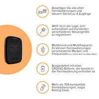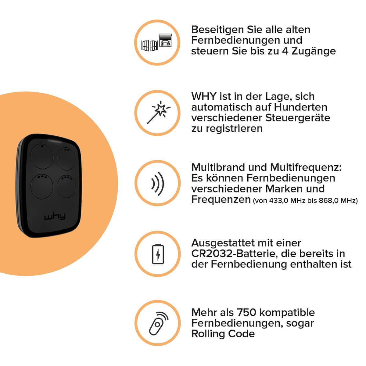 Vergessen Sie die alten Fernbedienungen und öffnen Sie alle Tore/Garagen mit WHY!