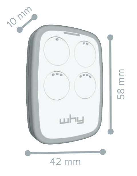 1Control WHY ist die universelle Fernbedienung, mit der Sie bis zu 4 verschiedene Zugänge steuern können (z. B. Tor, Garage, Bürotor, Zweitwohnungseingang). Mit WHY können Sie alle Ihre alten Fernbedienungen für immer vergessen.
