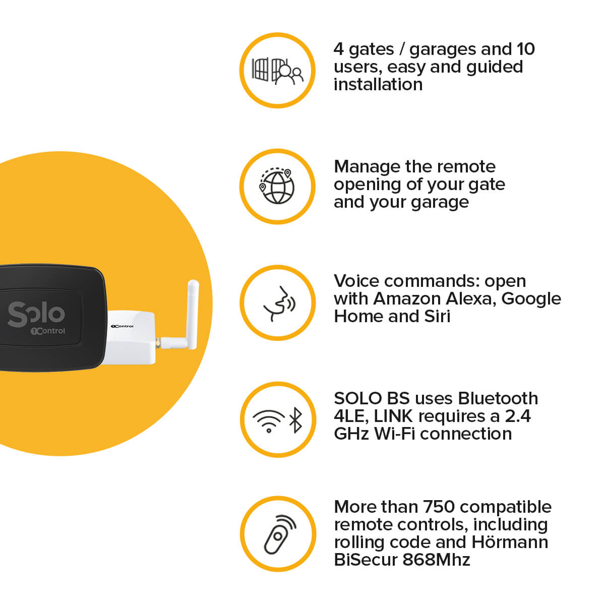SOLO can operate up to 4 gates or garages.