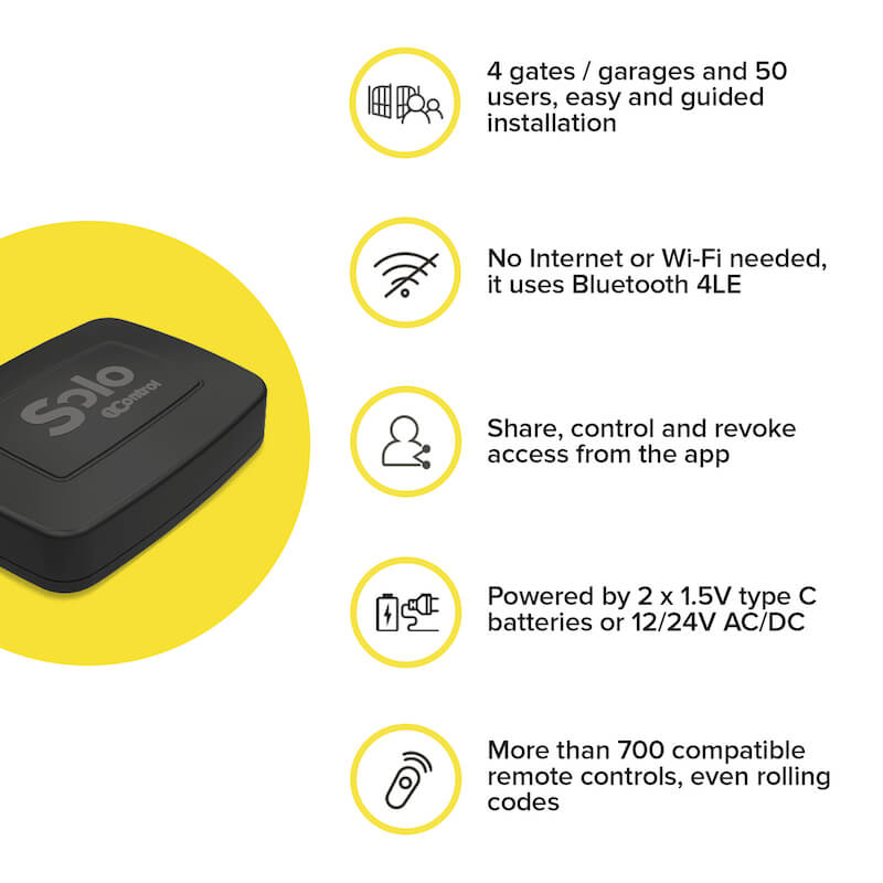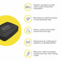Furthermore, the communication between smartphone and SOLO is protected by the latest security algorithms, while the communication between SOLO and the gate uses the same security as the original remote control.