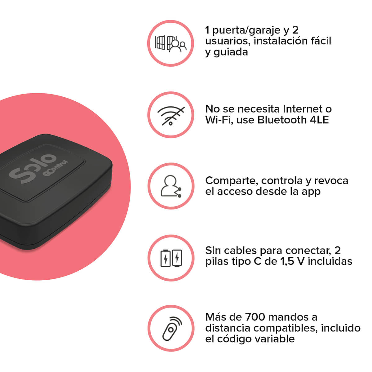 SOLO MINI es el abrepuertas que le permite abrir la puerta y el garaje con su teléfono inteligente. Es el único en el mundo sin cables para conectar y con tan amplia compatibilidad.
