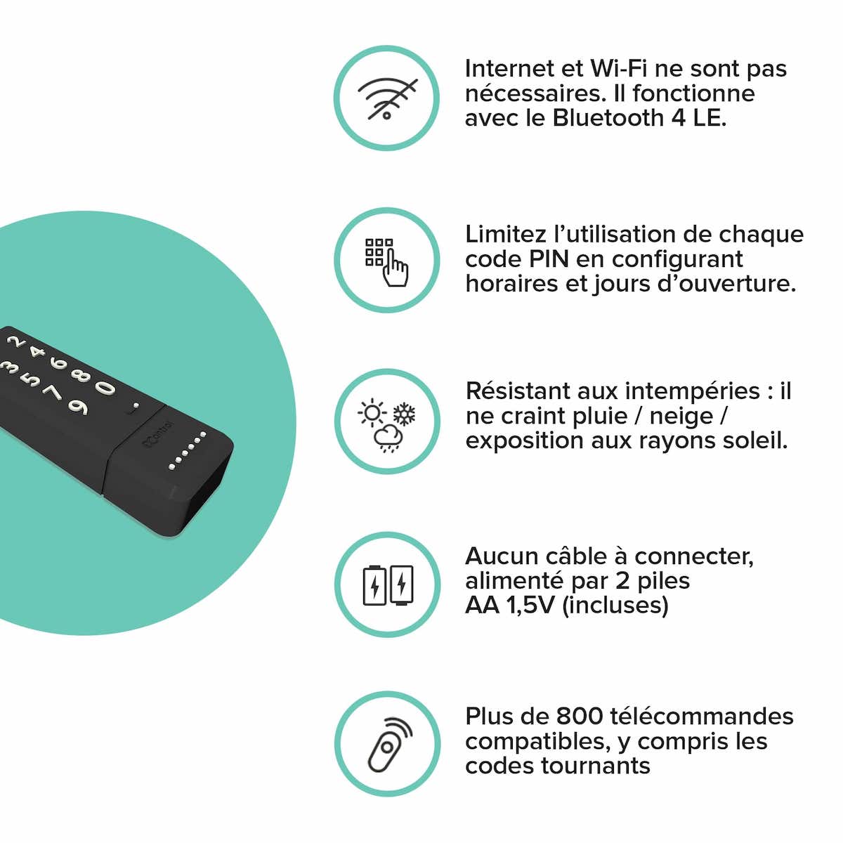 • 4 codes PIN inclus, avec possibilité de définir des jours/heures d'utilisation