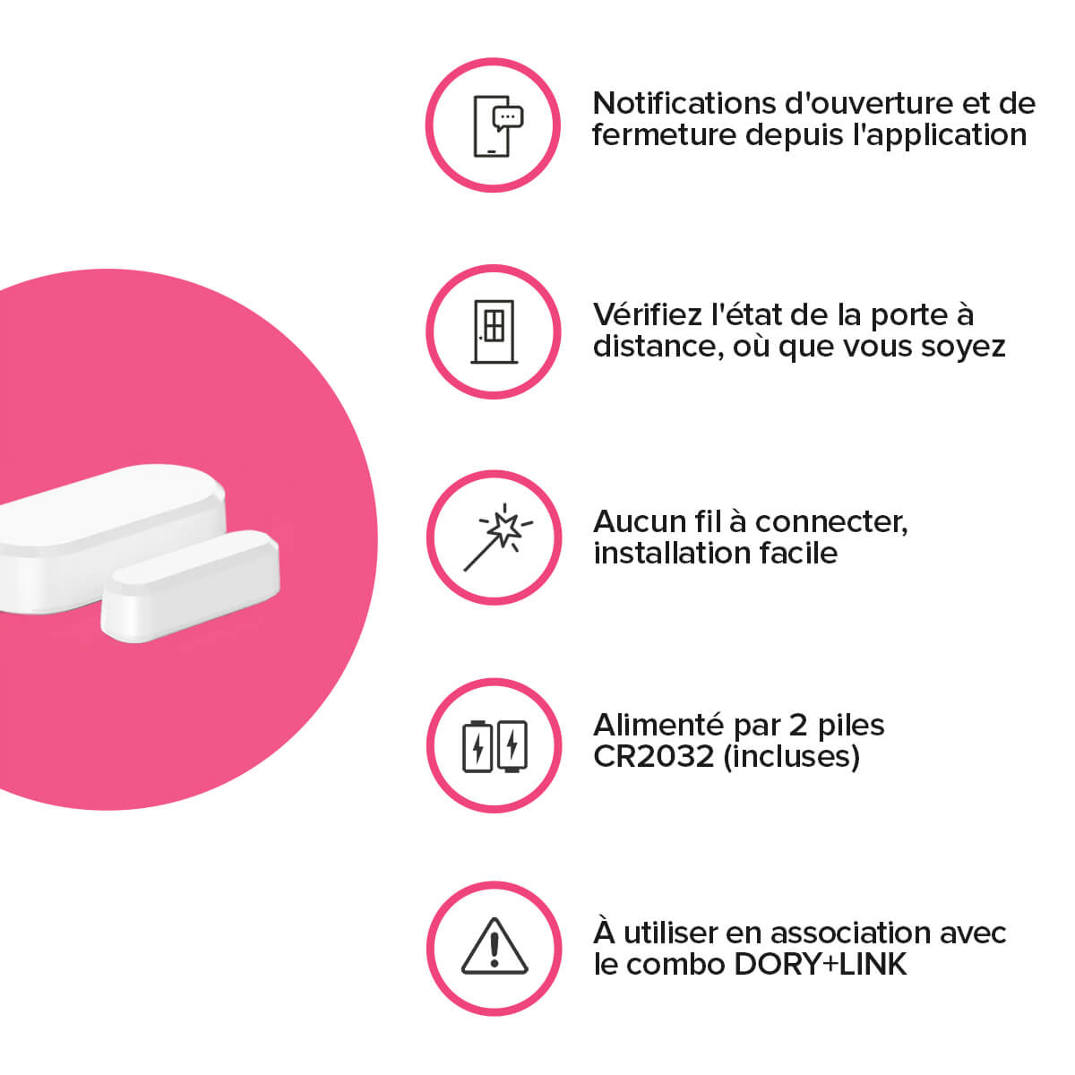 Collez le capteur sur la porte avec l'adhésif double face fourni