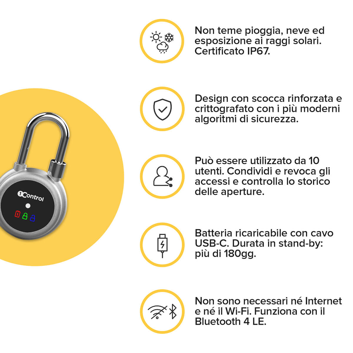 Non servono chiavi o PIN, basta un tap sullo smartphone per aprire il tuo lucchetto. Con 1Control LOCO tieni sotto controllo chi e quando apre il tuo lucchetto, anche mentre sei al lavoro o in viaggio.