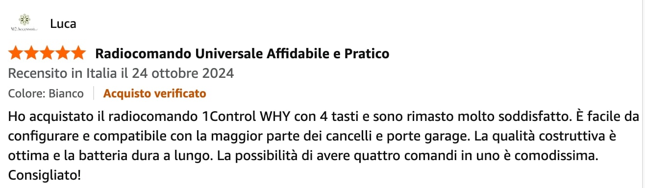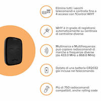 Dimentica i vecchi radiocomandi e utilizza WHY per aprire tutti i cancelli/garage!