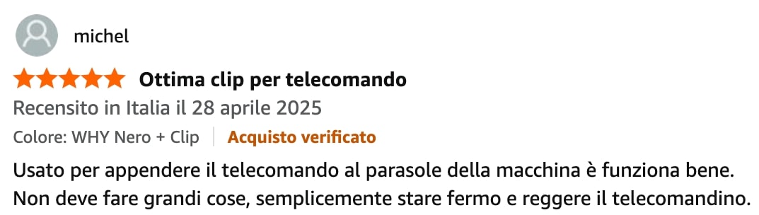 La Clip è un accessorio per i radiocomandi 1Control WHY che permette l'aggancio rapido al parasole di ogni modello di automobile, così da averli sempre a portata di mano per un utilizzo comodo e immediato!