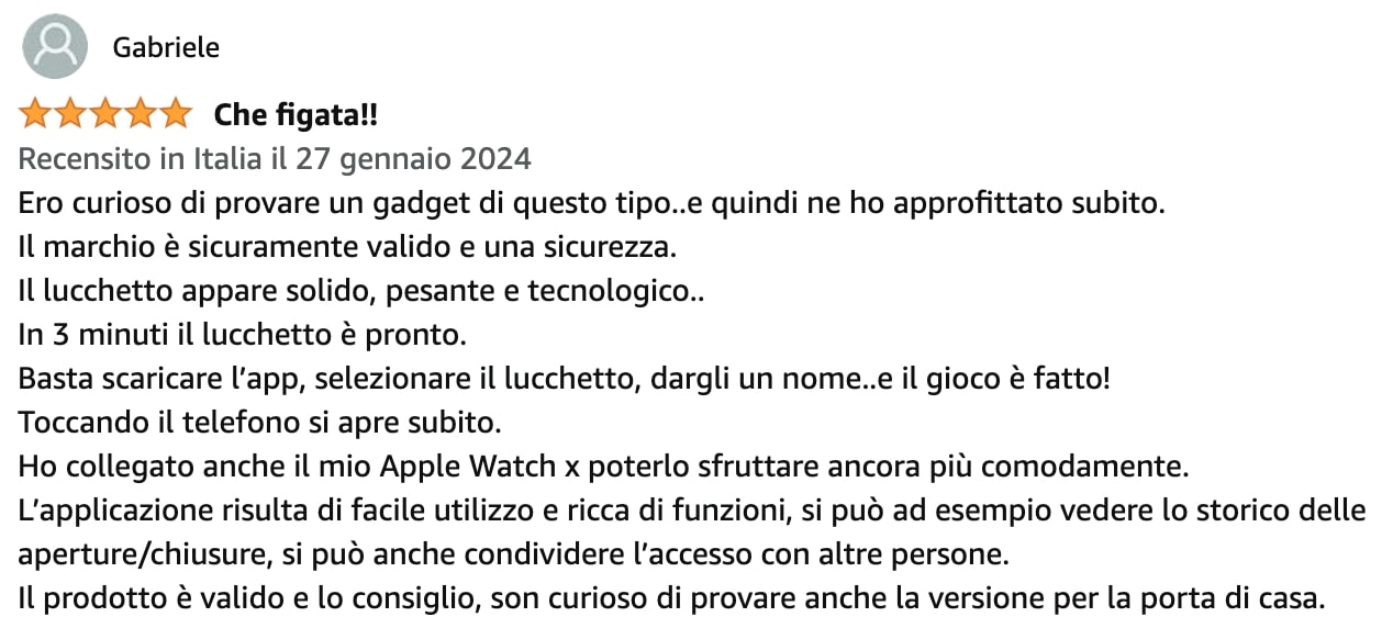 Fatto! Ora puoi gestire l'apertura e il controllo accessi del lucchetto direttamente da telefono e smartwatch