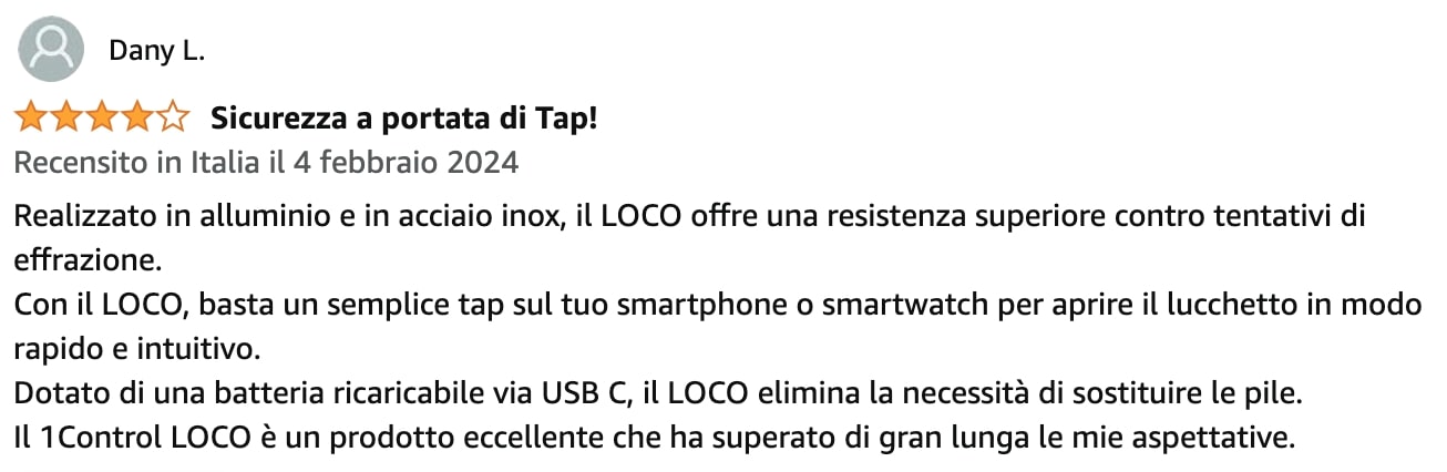 1Control LOCO - lucchetto smart bluetooth apribile con telefono e smartwatch
